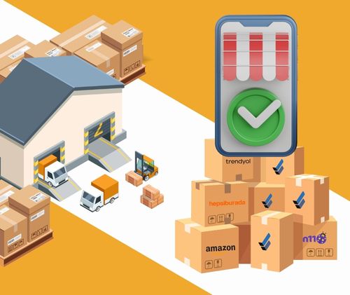 Pazaryerleri, kargo firmaları, ödeme altyapıları ve mobil uygulamalarla kesintisiz bağlantı sağlayan entegre yapı.